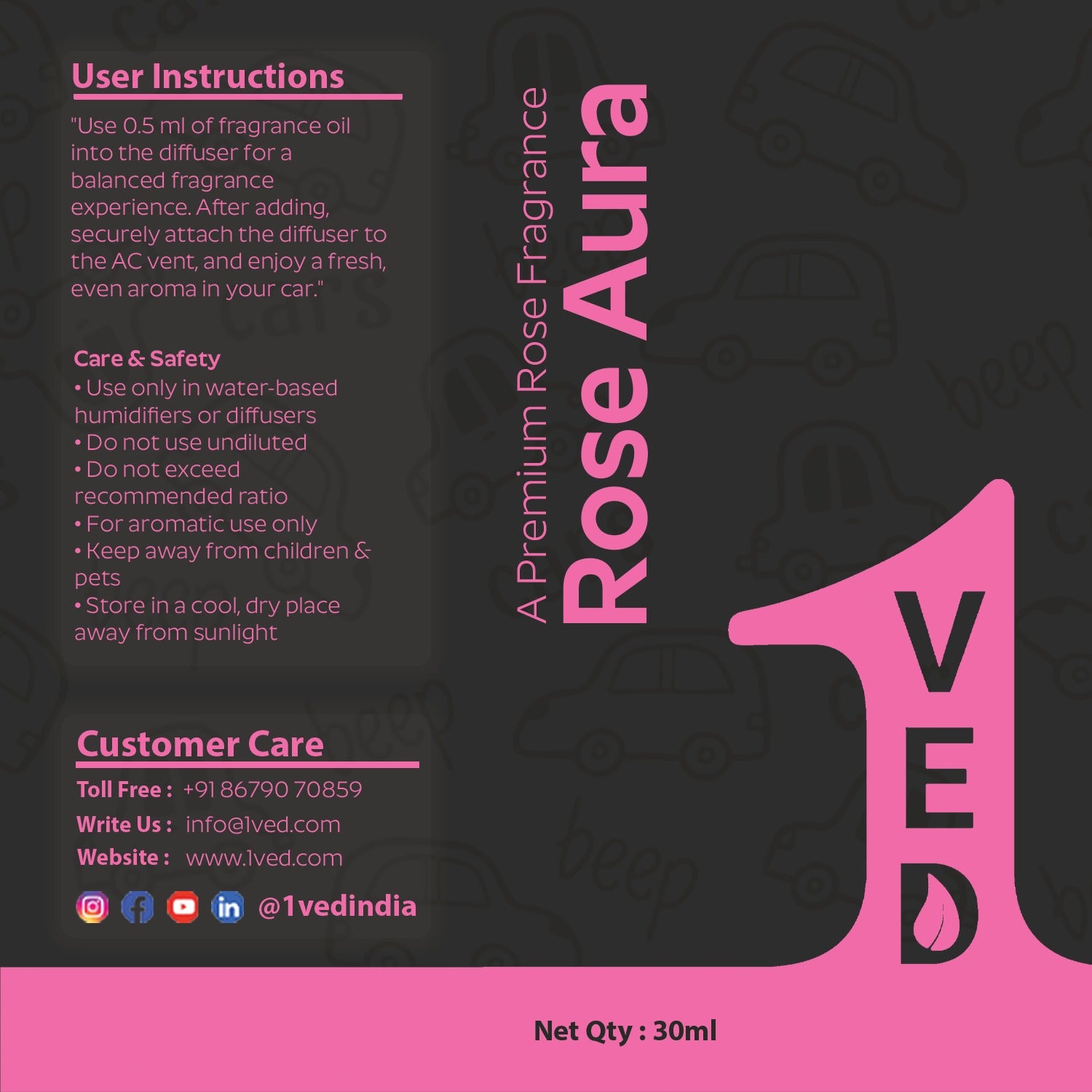 Transform your everyday drive into a refreshing and luxurious experience with 1VED Premium Rose Aura Fragrance Oil. Crafted with a rich and soothing rose essence, this premium fragrance oil fills your car or space with a soft, elegant aroma that lasts long and feels truly premium.